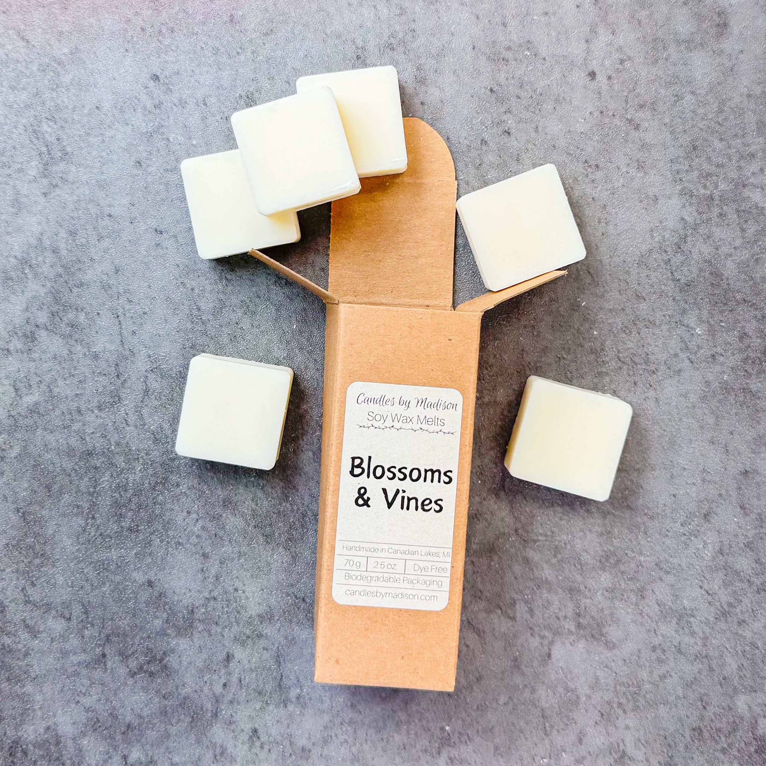 These wax melts something you will be proud to use in your home! All of our products are hand-poured with love in small batches. Each package comes with 6 square soy wax melt cubes (2.5 oz total) with a strong fragrance throw and long “burn” time. Packaged in recyclable & biodegradable cardboard boxes. Stickered with recyclable & compostable adhesive made from tree-free unbleached sugarcane paper.
