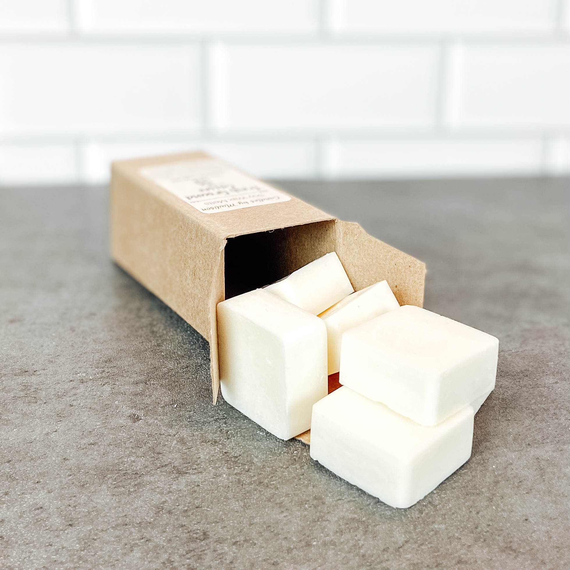 These wax melts something you will be proud to use in your home! All of our products are hand-poured with love by Madison, in small batches. Each package comes with 6 square soy wax melt cubes (2.5 oz total) with a strong fragrance throw and long “burn” time. Packaged in recyclable & biodegradable cardboard boxes. Stickered with recyclable & compostable adhesive made from tree-free unbleached sugarcane paper.